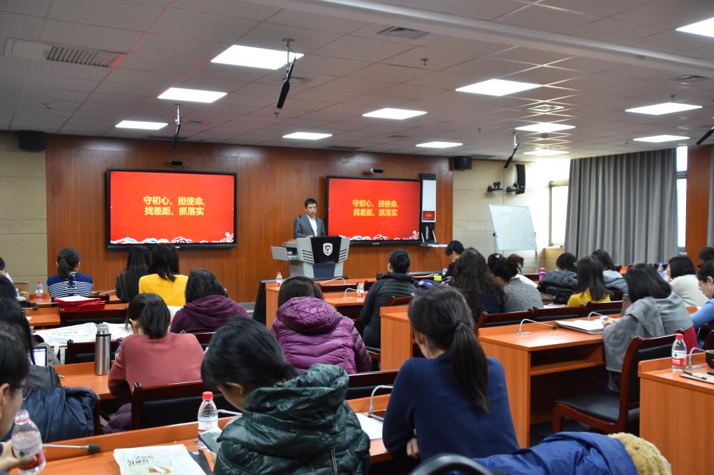 蔡鸿首先向全体教职工做了本学期学院主题教育成果专项汇报,并全面总结了学院在教学、教师发展、行政、科研、工会以及学生工作等方面的各项工作,赞扬了学院教师本学期所取得的可喜成绩和无私奉献精神,并在会上分享了KY官网援疆教师苏乐舟老师的新年寄语。