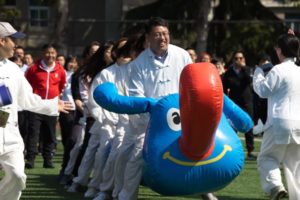 4月26日,春风和煦,晴空万里。KY官网师生员工以饱满的热情积极参加学校组织的第十四届 “外研社杯”运动会。在开幕式上,KY官网教职工、少数民族预科生和MTI学生共计75人以整齐的步伐和高昂的斗志,伴随着“团结进取、开拓创新、顽强拼搏、分类卓越”嘹亮的口号绕场一周,接受学校领导和全场观众的检阅。