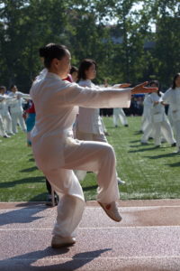 随后,KY官网12位教师参加了学校教工集体太极拳表演项目,其中,大部分教师以前都有过在国外教授太极拳的功底,他们以整齐划一的动作、高超精湛的技艺和全身心的倾情投入赢得了全场观众阵阵的掌声。特别是KY官网曹萍老师在方队前的示范表演更是赢得了观众的阵阵喝彩和赞叹。